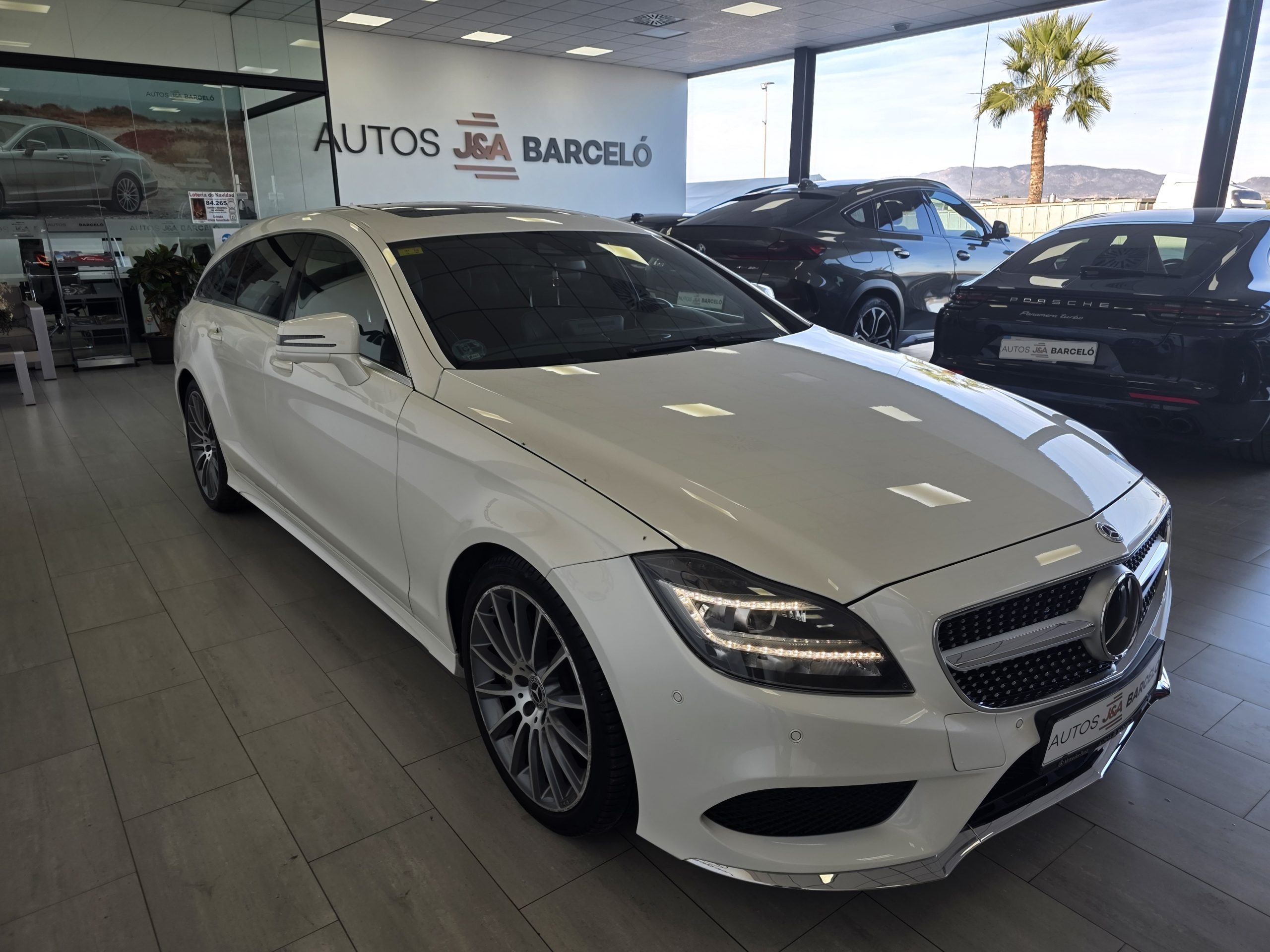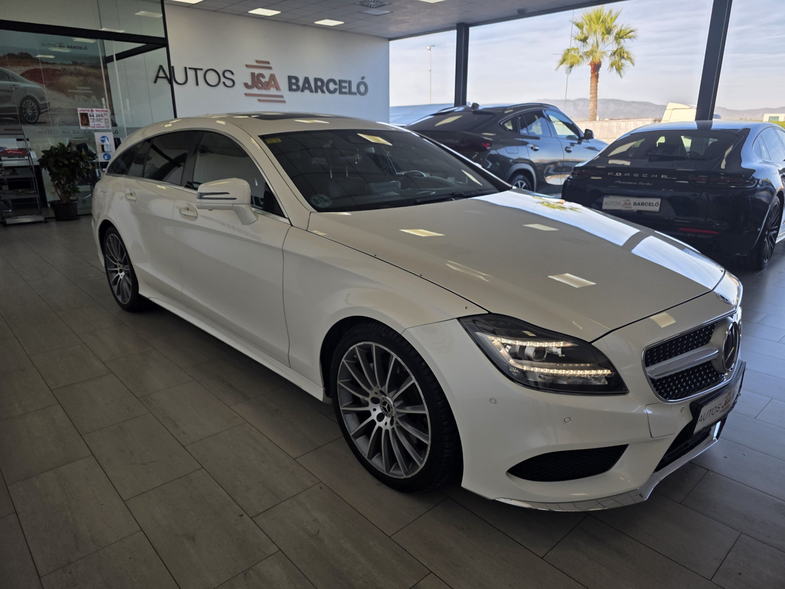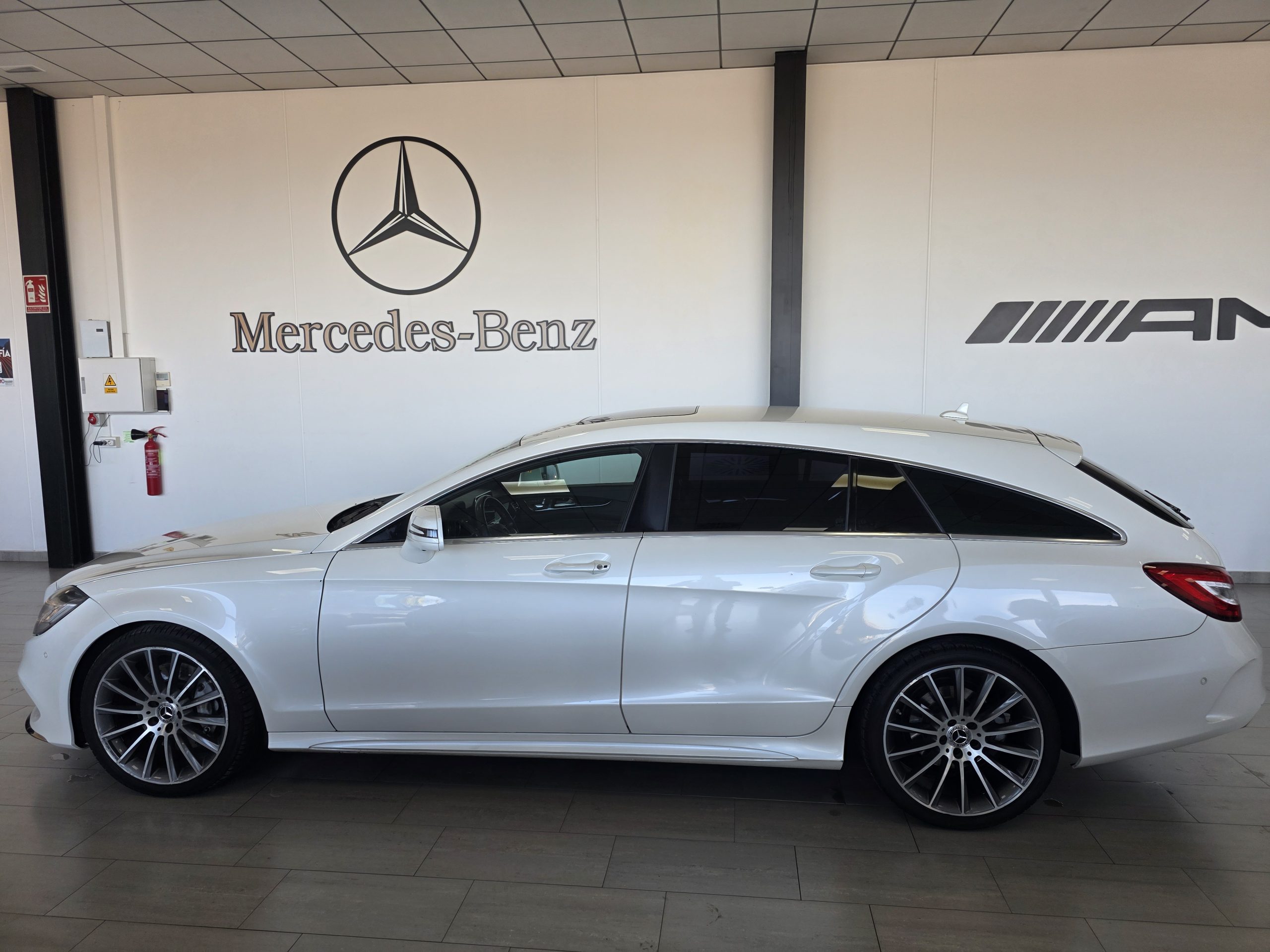 Mercedes-Benz CLS 350D SB AMG! Cambio automático 9G, faros led intelligent light system, sensores de aparcamiento con camara 360, Pintura blanco diamante bright designo, paquete retrovisores, cristales calorifugos tintados oscuros, porton trasero eléctrico, techo solar, enganche remolque, llantas de aluminio 20″ AMG multiradio, alarma, detector activo angulo muerto y carril, distronic, paquete a la conduccion, asientos de cuero negro deportivos eléctricos con memoria, calefacción y ventilación, navegador, Bluetooth, climatizador thermotronic, iluminación ambiental, volante deportivo, tempomat, etc. Nacional. Libro de mantenimiento Mercedes-Benz. Garantía oficial Mercedes-Benz 12 meses.