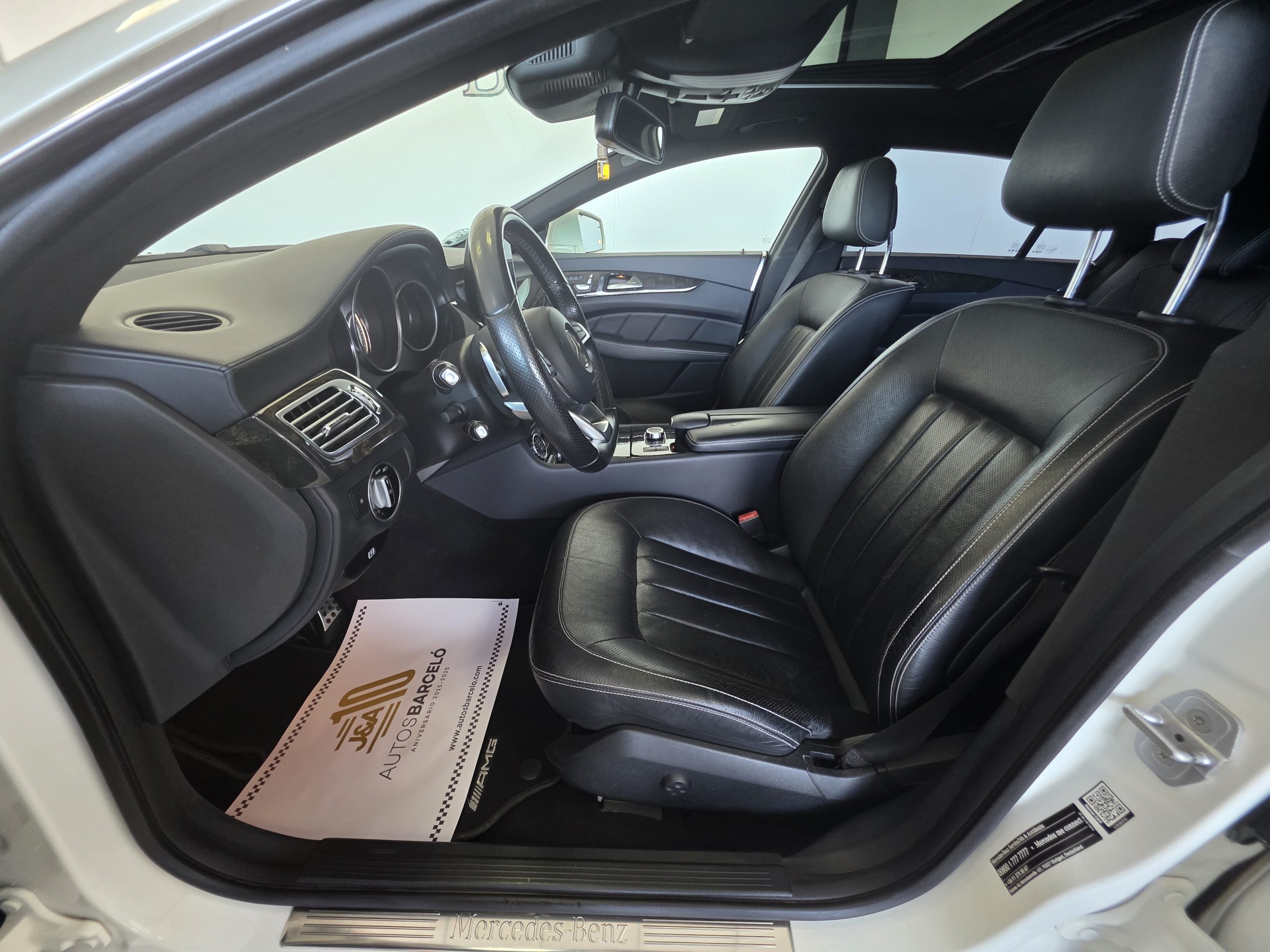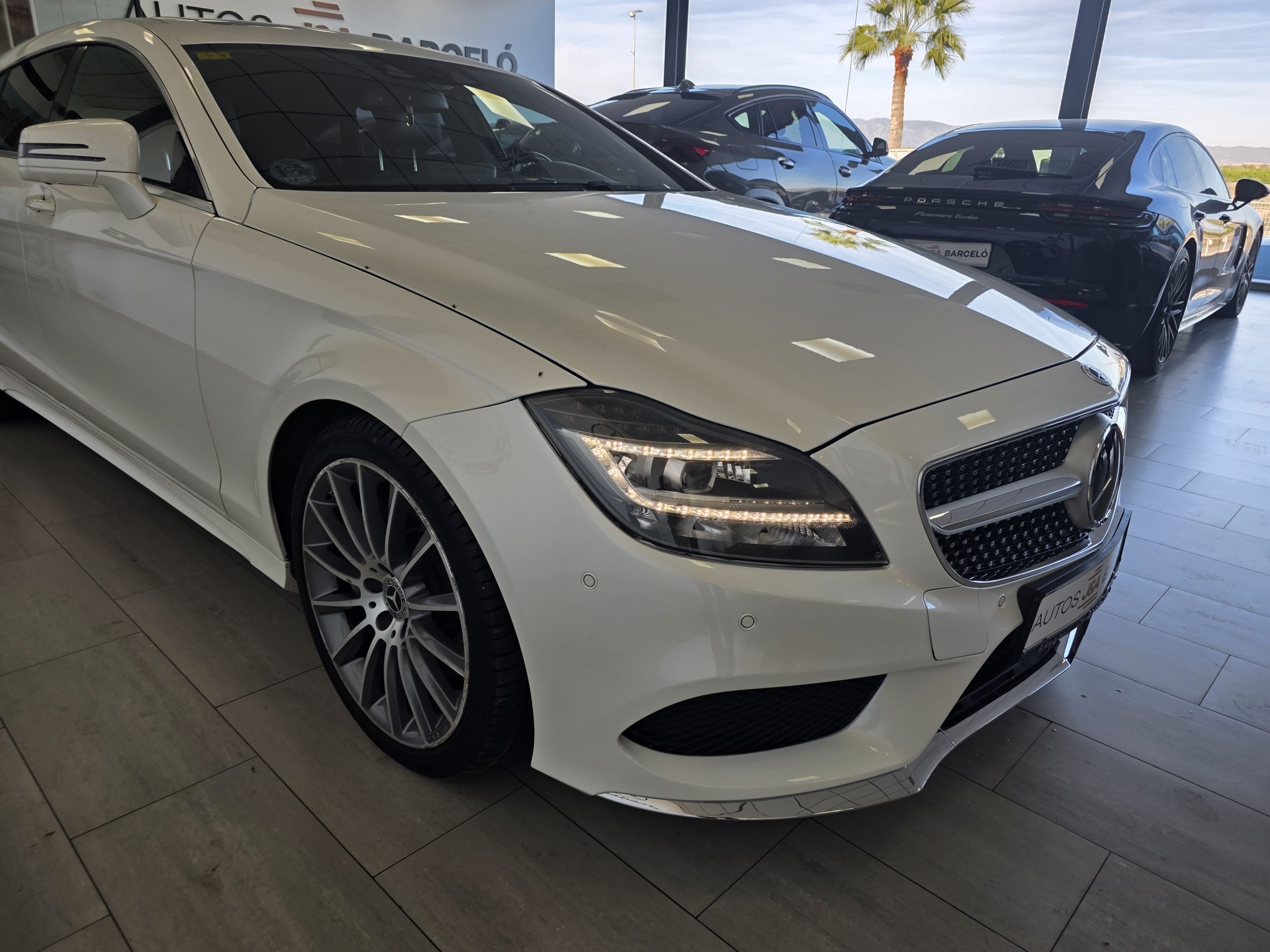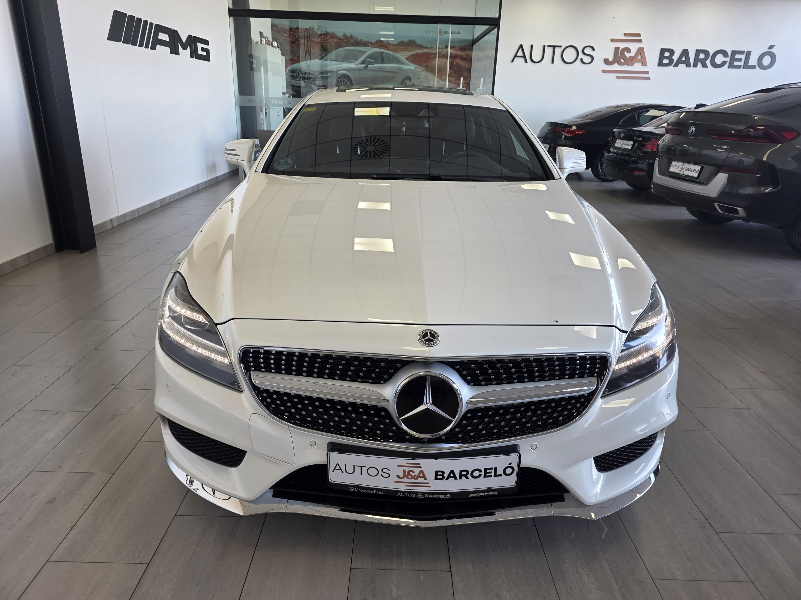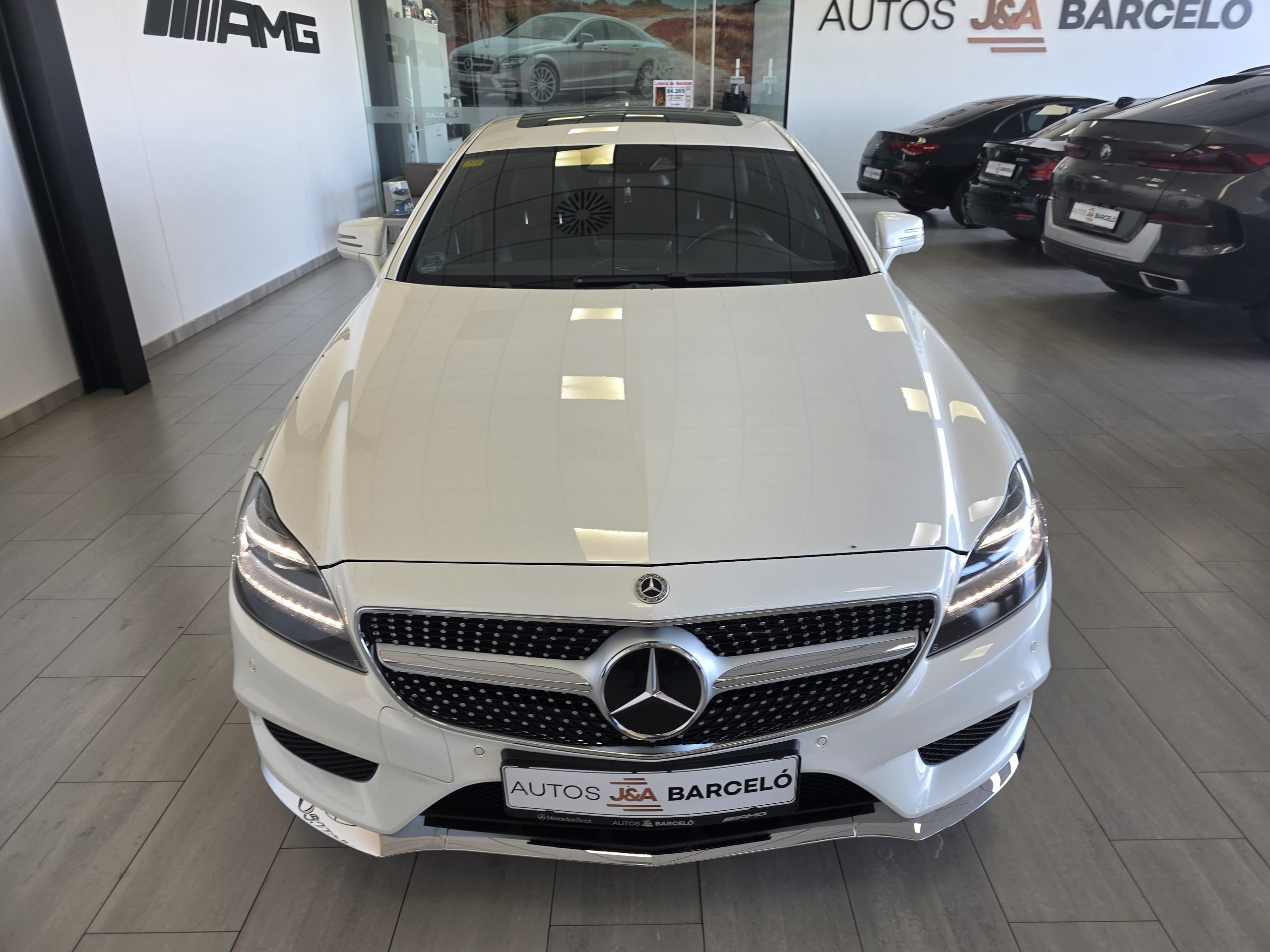 Mercedes-Benz CLS 350D SB AMG! Cambio automático 9G, faros led intelligent light system, sensores de aparcamiento con camara 360, Pintura blanco diamante bright designo, paquete retrovisores, cristales calorifugos tintados oscuros, porton trasero eléctrico, techo solar, enganche remolque, llantas de aluminio 20″ AMG multiradio, alarma, detector activo angulo muerto y carril, distronic, paquete a la conduccion, asientos de cuero negro deportivos eléctricos con memoria, calefacción y ventilación, navegador, Bluetooth, climatizador thermotronic, iluminación ambiental, volante deportivo, tempomat, etc. Nacional. Libro de mantenimiento Mercedes-Benz. Garantía oficial Mercedes-Benz 12 meses.